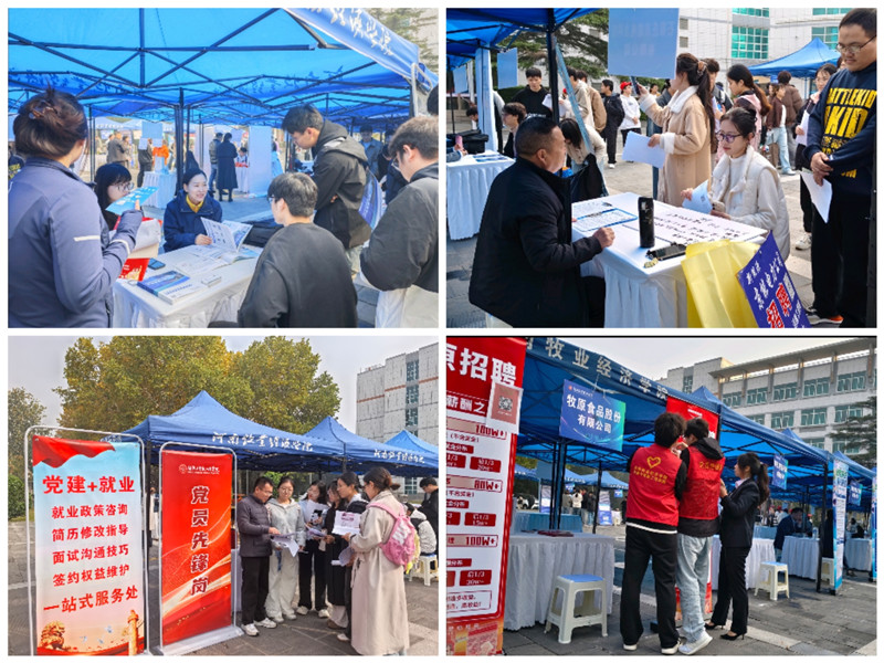 本次双选会邀请到牧原食品股份有限公司、广东海大集团股份有限公司、人本股份有限公司、郑州凯雪冷链股份有限公司等42家省内外优质企业单位参会。为拓宽毕业生求职就业渠道,学院主动联系对接浙江省绍兴市嵊州市人力资源和社会保障局,嵊州市人才发展集团有限公司、浙江天盛机械有限公司、嵊州市东方电机有限公司等6家企业组团到场招聘,提供百余个就业岗位。本次双选会企业招聘岗位与学院所开设的专业契合度高,为我院384名毕业生提供了近千个就业岗位,有1000余名在校生参加招聘会。招聘会现场气氛热烈、人头攒动,毕业生积极与用人单位交流沟通,用人单位热情地向同学们介绍岗位需求、薪资待遇等情况。低年级学生在辅导员老师的动员下也积极来到现场,提前了解就业形势和就业要求,有目的地做好个人职业规划。招聘会现场设置党员先锋岗,党员教师为毕业生开展政策宣讲,帮助学生了解就业创业政策,现场提供简历指导、职业规划咨询等服务,100余名学生志愿者为参会企业及求职学生提供暖心服务。