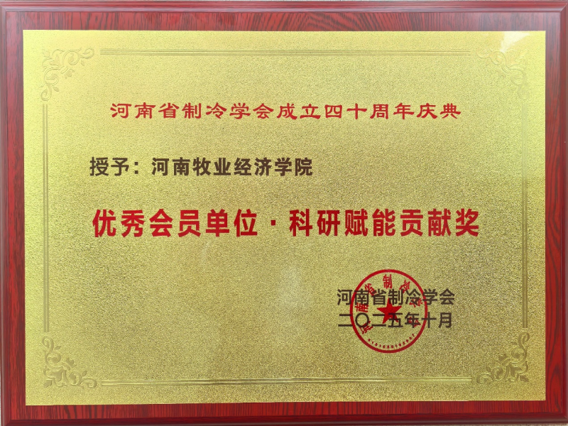 庆典活动上,学院凭借在制冷冷链领域的突出贡献荣获“优秀会员单位科研赋能贡献奖”,王硕院长代表学院上台领奖。获此殊荣,进一步彰显了学院在制冷冷链领域的学科优势与服务产业能力。未来,学院将持续深化产学研用融合,以新质生产力培育为核心,聚焦冷链产业绿色化、智能化转型需求,强化科研创新与人才培养,为河南乃至全国冷链设备产业高质量发展贡献更大力量。(文 /图 黄冰)