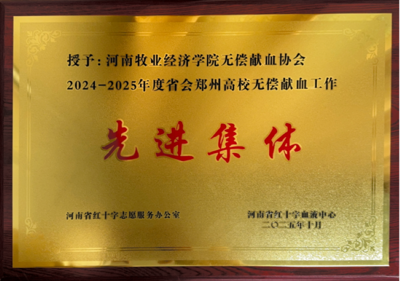 近日,2024-2025年度省会郑州高校无偿献血工作表彰大会传来喜讯,我院凭借在无偿献血领域的扎实工作与突出成效,被河南省红十字血液中心授予“先进集体”荣誉称号。