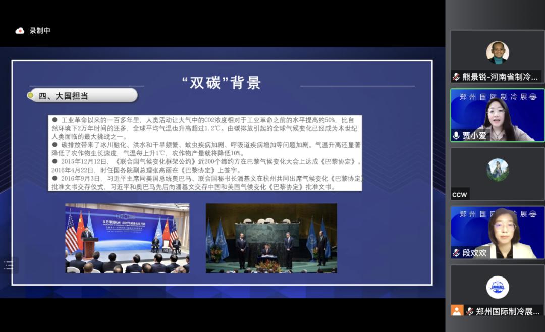 2023年3月8日,由河南省科学技术协会指导,河南省制冷学会、郑州国际制冷展组委会联合主办的“百会链千企”云课堂第九期—“教育双碳的实现模式与途径”如期开播。学会邀请郑州春泉节能股份有限公司常务副总经理贾小爱为主讲嘉宾,河南省制冷学会科宣部部长段欢欢主持。本次直播总观看量达到480多人次。